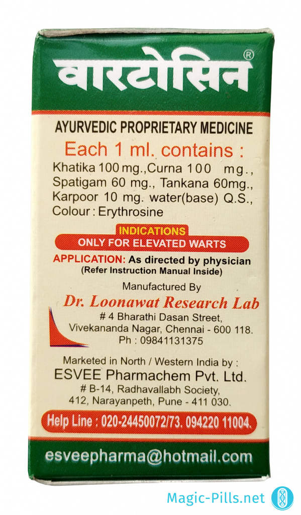 А потому есть смысл купить Вартосин. Речь ведётся об эффективном аюрведическом средстве, производством которого занимается индийская фармацевтическая компания «Dr. Loonawat Research Lab.».