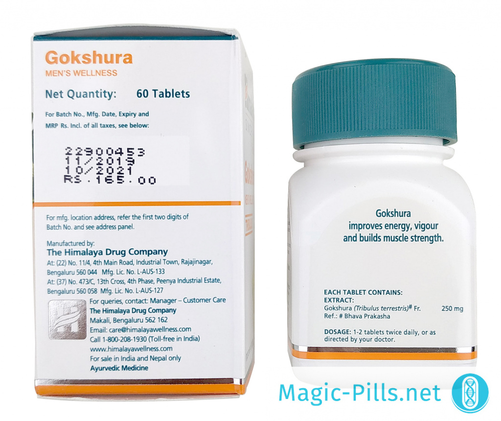 У «выхода» есть вполне определённое название – Gokshura Men’s Wellness. Речь идёт о биологически активной добавке – аюрведическом биостимуляторе для мужчин (производитель – индийская фармацевтическая компания «Himalaya Herbal Healthcare»). Его основное назначение – увеличение половой и физической выносливости.