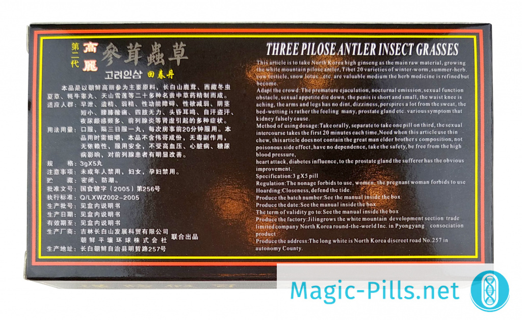 Такие значимые улучшения объясняются продуманным составом Хуэй Чжун Дан, в него входят экстракты растений: корейский женьшень, кордицепс китайский, кора йохимбе, снежный лотос и ярсагумба.