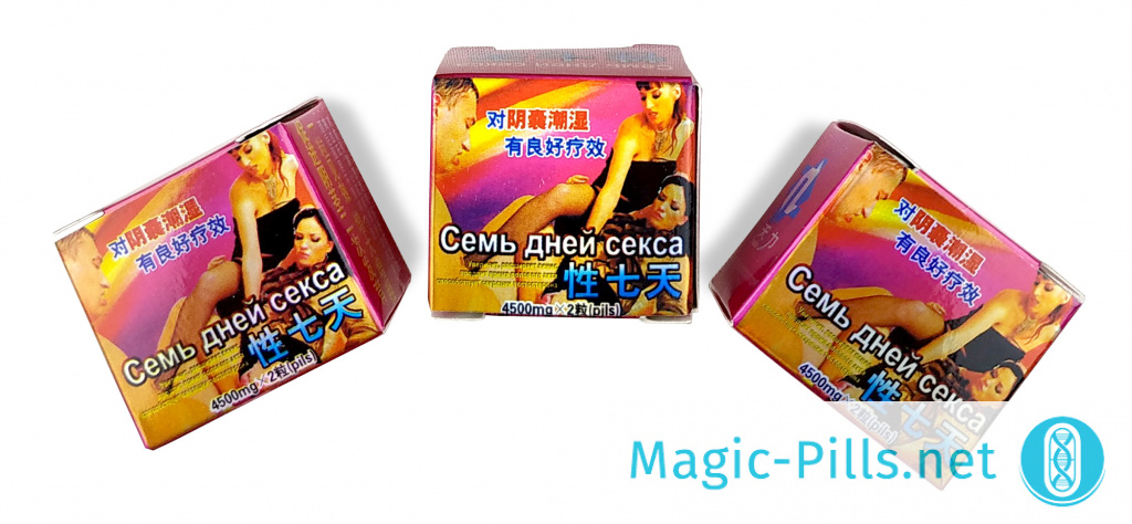 Натуральные таблетки Семь дней секса работают в качестве общеукрепляющего, тонизирующего, стимулирующего и возбуждающего средства. При грамотном приеме они помогают справиться с проявлениями половой слабости и комплексно решают проблемы, возникающие с мужским здоровьем.