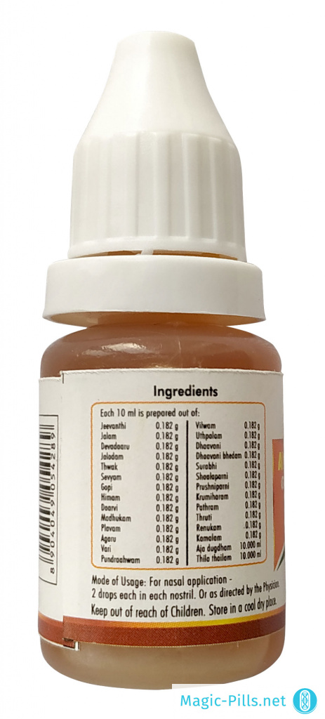 При изготовлении средства Anu Thailam вытяжки из перечисленных растений вводятся в кунжутное масло, которое является не просто бесполезной основой, а значимым равноправным компонентом. Кроме того, капли в нос Ану Тайлам содержат козье молоко.