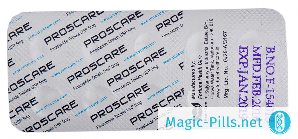 Proscare 5 mg – это новый препарат на основе Финастерида от индийской компании Fortune Health Care. Уникальной особенностью Proscare 5 mg является современная доработанная формула, в которой улучшены участки, влияющие на усвояемость препарата. Благодаря этой доработке уменьшилась вероятность нецелевого воздействия лекарственного средства и проявления побочных эффектов. Поэтому купить Proscare 5 mg будет верным решением для тех мужчин, которые хотят избавиться от залысин с минимальным риском для здоровья.