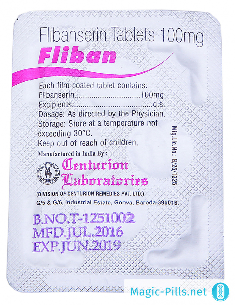 Fliban или Флибан – это препарат от знаменитой индийской фармацевтической компании Centurion Laboratories, созданный для лечения пременопаузы и упадка либидо у женщин. Современные компоненты препарата воздействуют напрямую на мозг женщины, как бы включая возбуждение изнутри. Название препарата «Флибан» образовано от первой части его главного действующего вещества Флибансерина.
