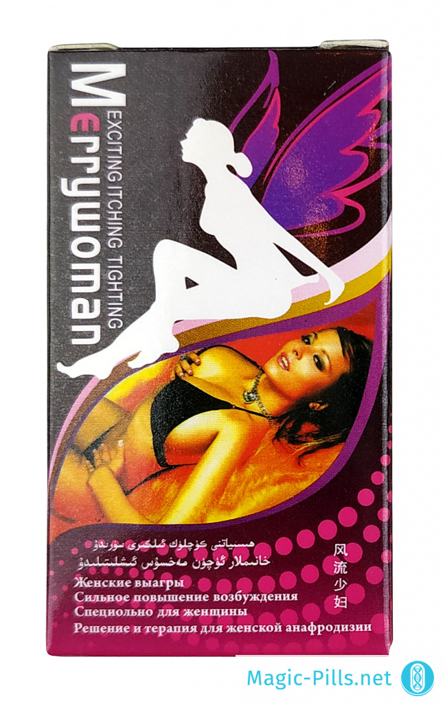 Купить Merry Woman рекомендуется в качестве универсального афродизиака, способного стимулировать женскую половую сферу. Препарат помогает справиться с фригидностью, спровоцированной функциональными нарушениями в организме на фоне гормонального сбоя, наступления менопаузы, удаления яичников. Также средство проявляет активность в отношении расстройств, возникающих как следствие воздействия стресса, усталости, нервного напряжения.