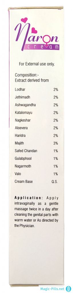 К счастью, выход есть! Более того, этот «выход» имеет вполне определённое название – Naron Cream. Разговор ведётся о весьма действенном средстве, созданном из натуральных природных компонентов, чьё назначение – улучшать состояние влагалища, а, соответственно, и повышать качество секса. На нашем сайте можно заказать крем Нарон по цене ниже среднерыночной.