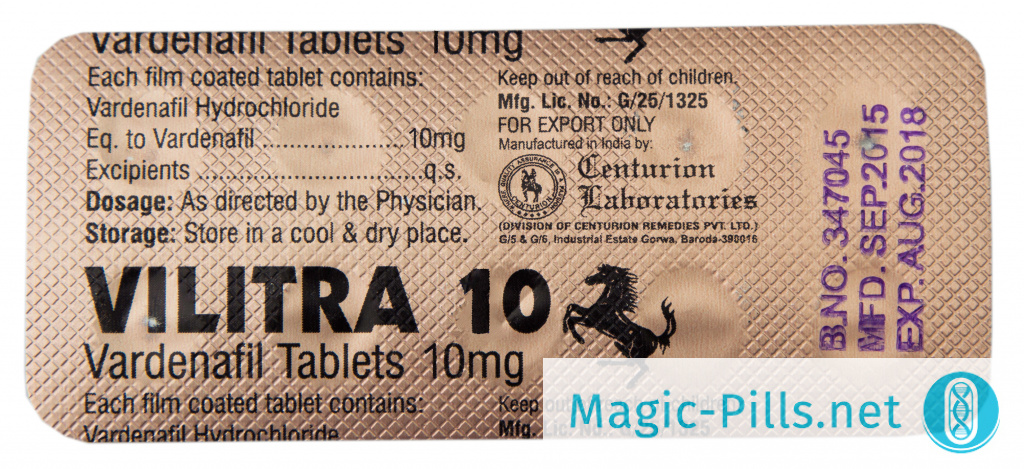 Состав любого лекарственного средства можно разделить на 2 категории: активные компоненты и вспомогательные. Активные компоненты выполняют непосредственно лекарственную функцию, то есть борются с теми или иными проявлениями заболевания, а вспомогательные компоненты нужны, чтобы «обслуживать» активные: улучшать их усвояемость, скорость работы, время действия и др. Обычно на вспомогательные компоненты никто не обращает внимания, поскольку они не имеют особенного значения. Та же ситуация и с Vilitra 10 mg – здесь имеет значение только активный компонент, именуемый Варденафилом.