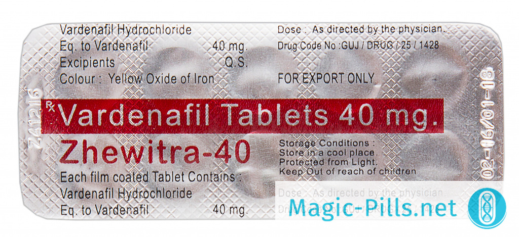 Жевитра - препарат известной фармацевтической компании Sunrise Remedies Pvt.Ltd, отличающийся высоким качеством, мощнейшим воздействием и минимизированным количеством побочных эффектов. Zhewitra 40 mg используется для восстановления мужской потенции и лечения различных проявлений эректильной дисфункции. За время существования препарат доказал свою эффективность и безопасность. Сегодня Жевитру рекомендуют специалисты-андрологи, урологи и сексопатологи более чем в 150 странах мира.
