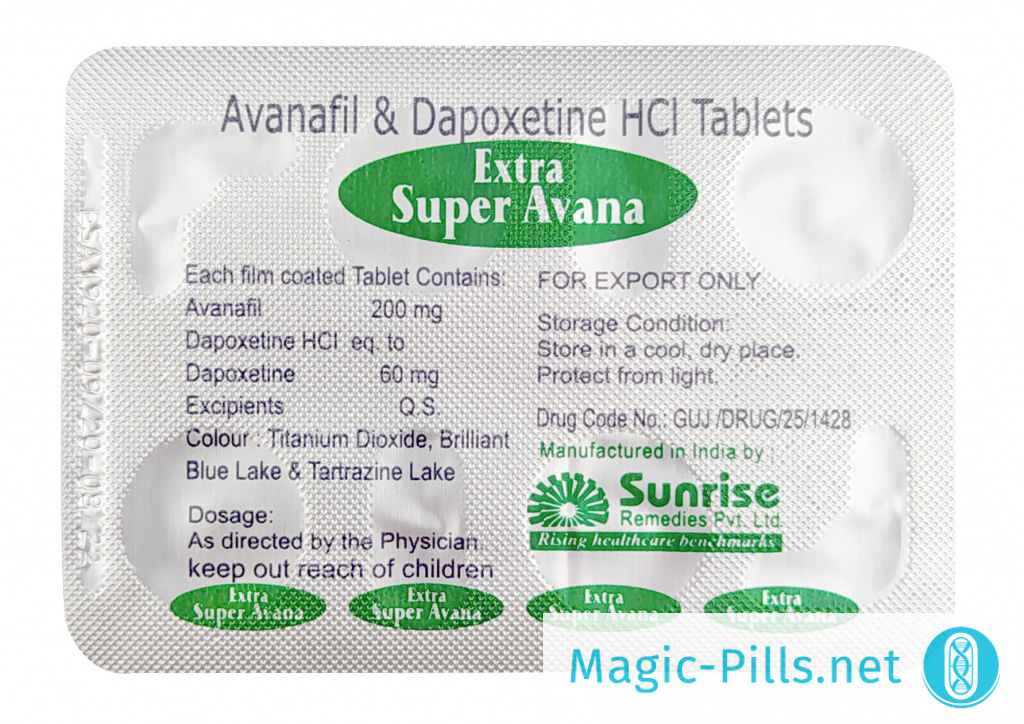 Extra Super Avana (Аванафил 200 мг + Дапоксетин 60 мг)