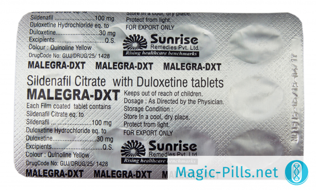 Среди заболеваний эректильной дисфункции у мужчин встречается слабая потенция и быстрое семяизвержение. Двойную мужскую проблему можно решить с помощью одного препарата Malegra DXT. В ее основе заложено 2 важных компонента – Силденафил и Дулоксетин. Такой удачный тандем считается возможным и эффективным. Благодаря главному действующему веществу Силденафилу, который входит в состав легендарной Виагры, решается проблема со слабой потенцией. Кровь приливает к половым органам мужчины, вызывая достаточный для полового акта уровень эрекции. В то же время действие Дулоксетина способно продлить половой акт. Ваша женщина точно останется довольной от устойчивой эрекции и победы над ранним финишированием.