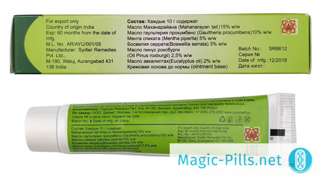 Индийский крем Долорон – кладезь полезных веществ, источником которых служат растительные масла эвкалипта, мяты, гаултерии, пинус рохсбурги, ладана, генерика. Каждый отдельно и в комплексе они обладают выраженным терапевтическим эффектом, направленным на устранение различных патологий воспалительного и дегенеративно-дистрофического характера, возникающих в суставах, связках, мягких тканях и мышцах.