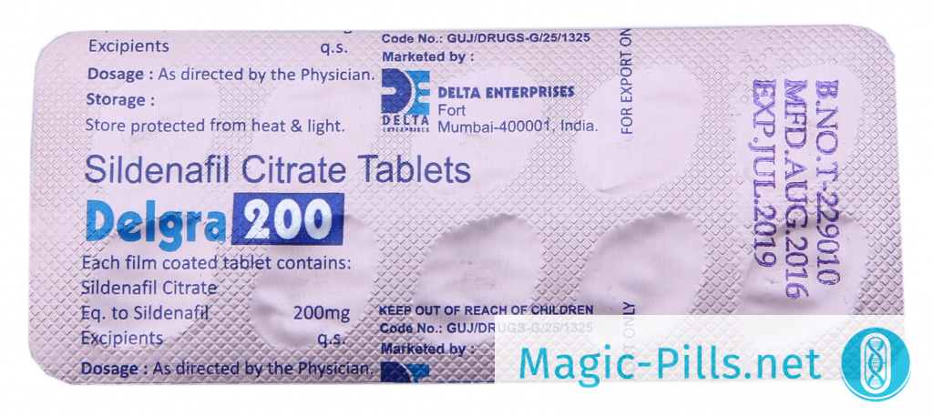 Delgra – это серия препаратов для лечения эректильной дисфункции от знаменитой индийской фармацевтической компании Delta Enterprises. Название этого лекарственного средства как раз образовано из первой части названия этой компании и второй части самого знаменитого регулятора потенции «Виагра». Delgra 200 mg – это богатырь всей серии, поскольку содержит в себе максимальную дозу препарата для мужчин, вес которых превышает 110 кг. Такая мощность может превратить даже самый вялый половой член в стальной, несгибаемый фаллос.