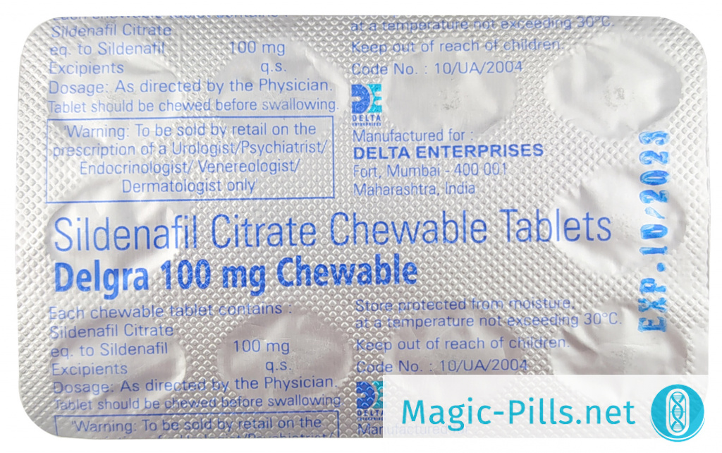 Показать аннотацию и основную информацию по препарату «Delgra Chewable 100 mg»