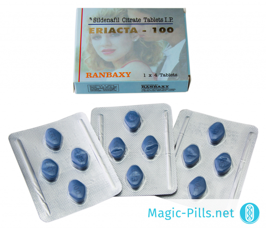 Таблетка Эриакта начинает свое действие в течение один час после приема, поэтому принимать ее нужно заблаговременно до предполагаемой интимной близости. Действие препарата продолжается до 5 часов. Вообще, Eriacta 100 mg отличается высокими показателями качества, но прежде чем начать ее прием обязательно проконсультируйтесь со специалистом и ознакомьтесь с возможными побочными эффектами. Наиболее частыми побочными эффектами от использования Силденафила считаются: выраженная головная боль, головокружение, диспепсические расстройства, заложенность носа, покраснение кожи. Эти реакции часто возникают в ответ на прием большей дозы препарата, то есть более 100 мг.