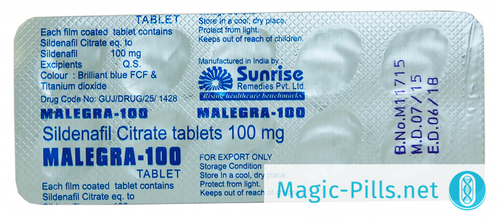 Лекарственное средство Malegra является дженериком Виагры. Оно назначается мужчинам, имеющим проблемы с потенцией. Действие препарата Малегра направлено на восстановление эректильной функции, независимо от причины её нарушения, поскольку она помогает как при физиологических причинах, так и при большинстве психологических. Состав Malegra 100 mg включает в себя все компоненты, из которых создана Виагра. Причём Силденафил в количестве ста миллиграмм является классической дозировкой для разового приёма препарата, действие которого рассчитано на период от 4 до 6 часов.
