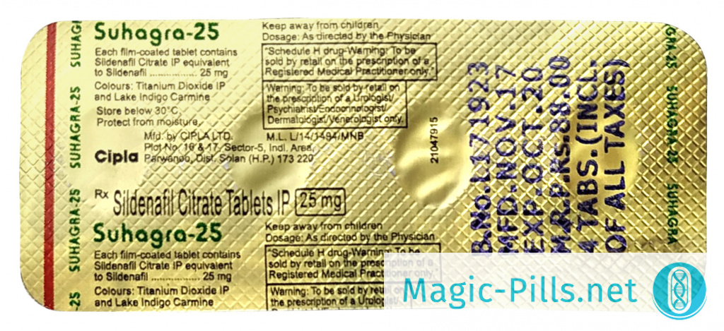 ОбновитьSuhagra 25 mg — дженерик Виагры в минимальной дозировке