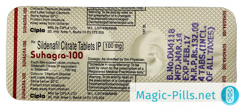 Suhagra 100 mg является надежным препаратом. Он предназначен для того чтобы нейтрализовать проблему эректильной дисфункции у мужчин, независимо от возраста. Исключением становится категория покупателей, которая не достигла восемнадцатилетнего возраста. Современный препарат поможет избавиться от симптомов заболевания, о которых стыдно говорить вслух. Да и рассказывать о них кому-либо, кроме врача, вовсе необязательно, поскольку в магазине Magic Pills гарантирована 100% конфиденциальность.
